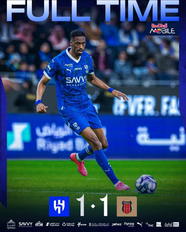全场比赛结束,利雅得新月主场1-1战平利雅得体育。
