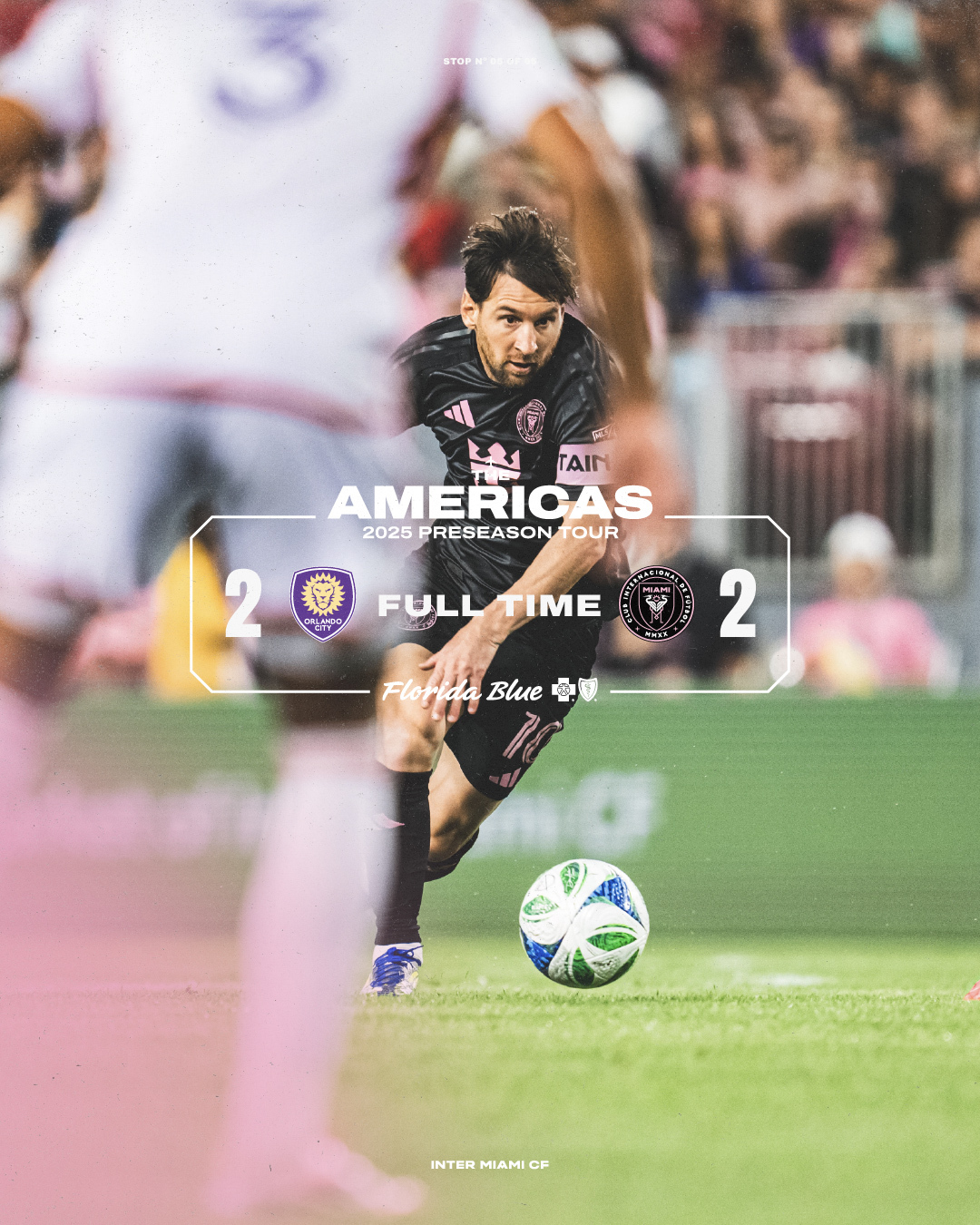 迈阿密补时绝平2-2奥兰多城 梅西75分钟换下迈阿密季前赛不败收官