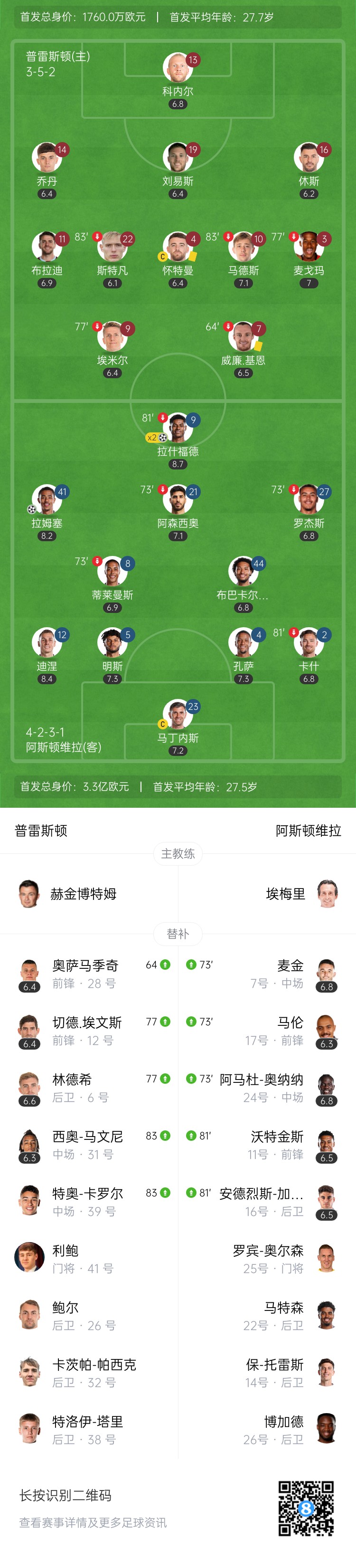 第30分钟,普雷斯顿传中造险,大马丁飞身破坏,普雷斯顿球员头球攻门顶偏↓