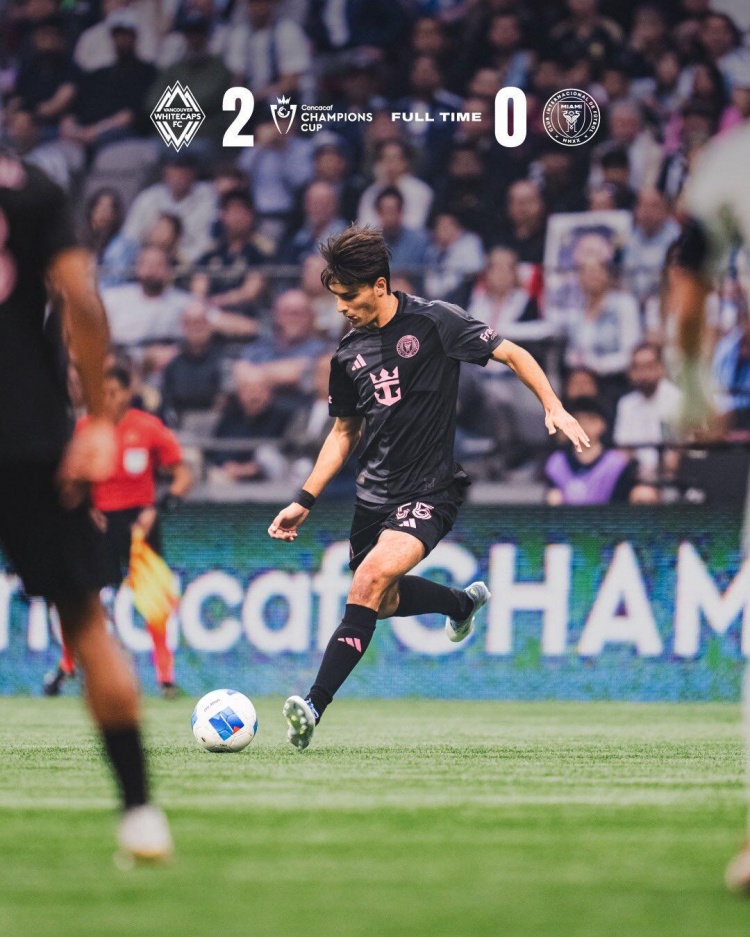 上半场补时2分钟,温哥华白浪1-0迈阿密国际。