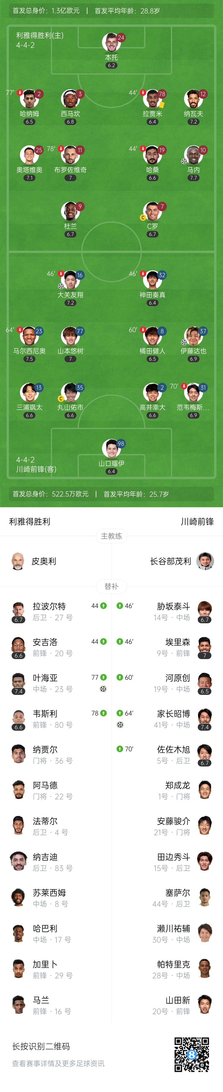 全场比赛结束,最终利雅得胜利2-3川崎前锋。