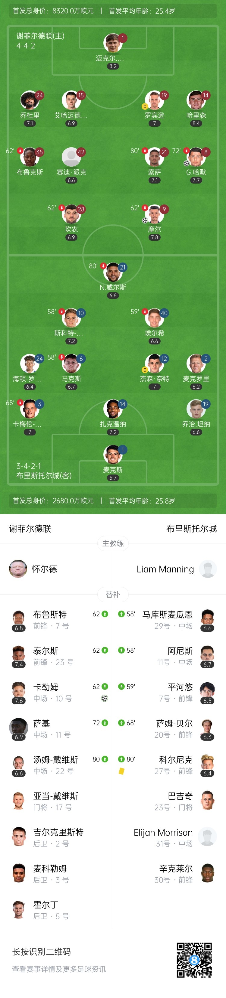 第41分钟,谢菲联右侧角球机会,哈里森-布鲁斯开到前点,基弗-摩尔头球破门!N-威尔斯门线上尝试用手挡出皮球未果!谢菲联1-0,总比分4-0领先布里斯托尔城!