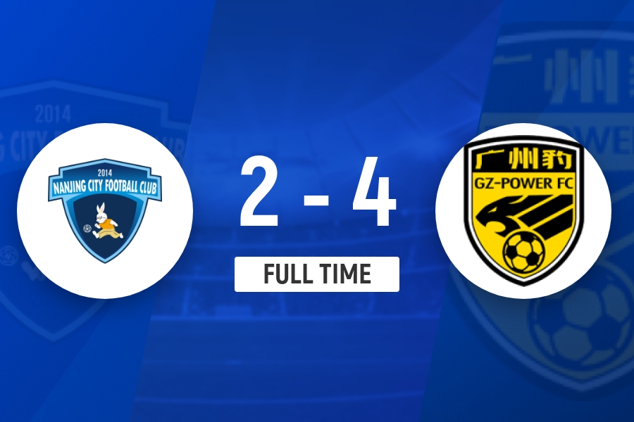 全场比赛结束,南京城市2-4广东广州豹。