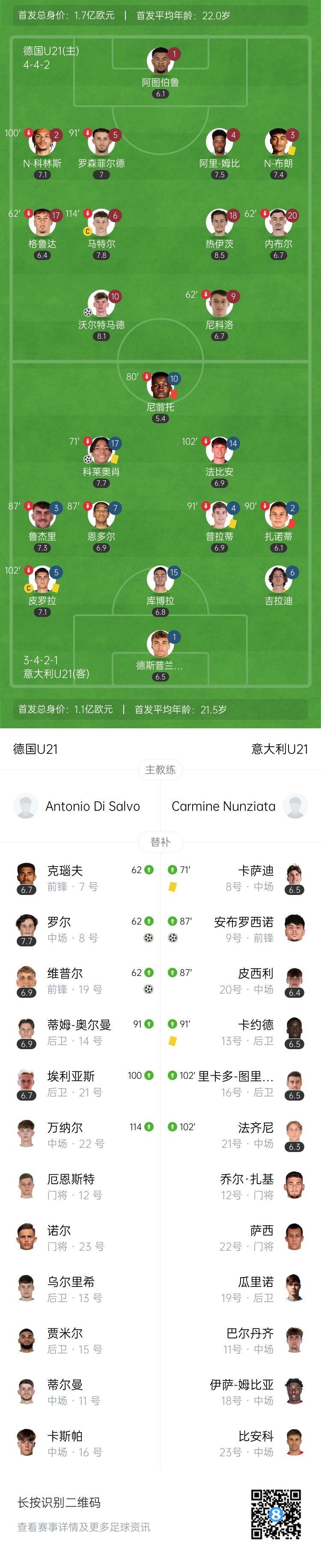 U21欧青赛-德国3-2九人意大利晋级半决赛 罗尔第117分钟绝杀