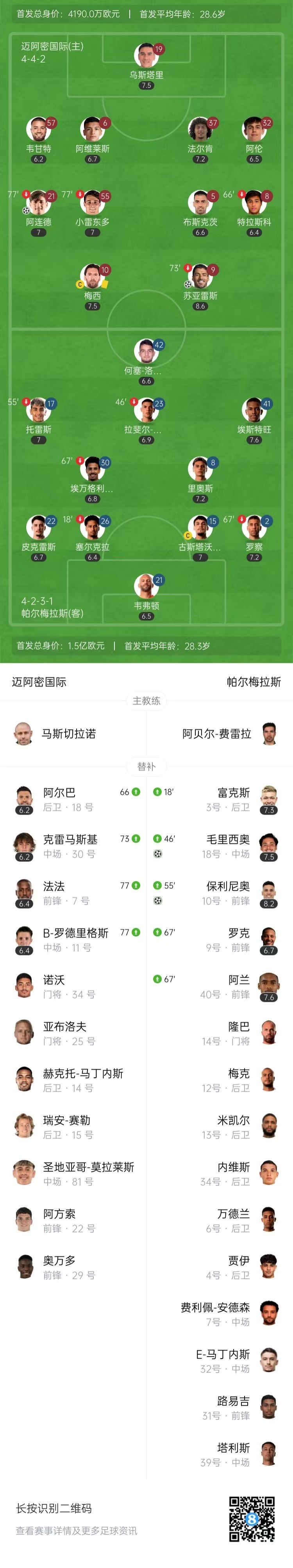 连丢2球💣迈阿密2-2帕尔梅拉斯 小组第二将战巴黎 38岁苏牙传射